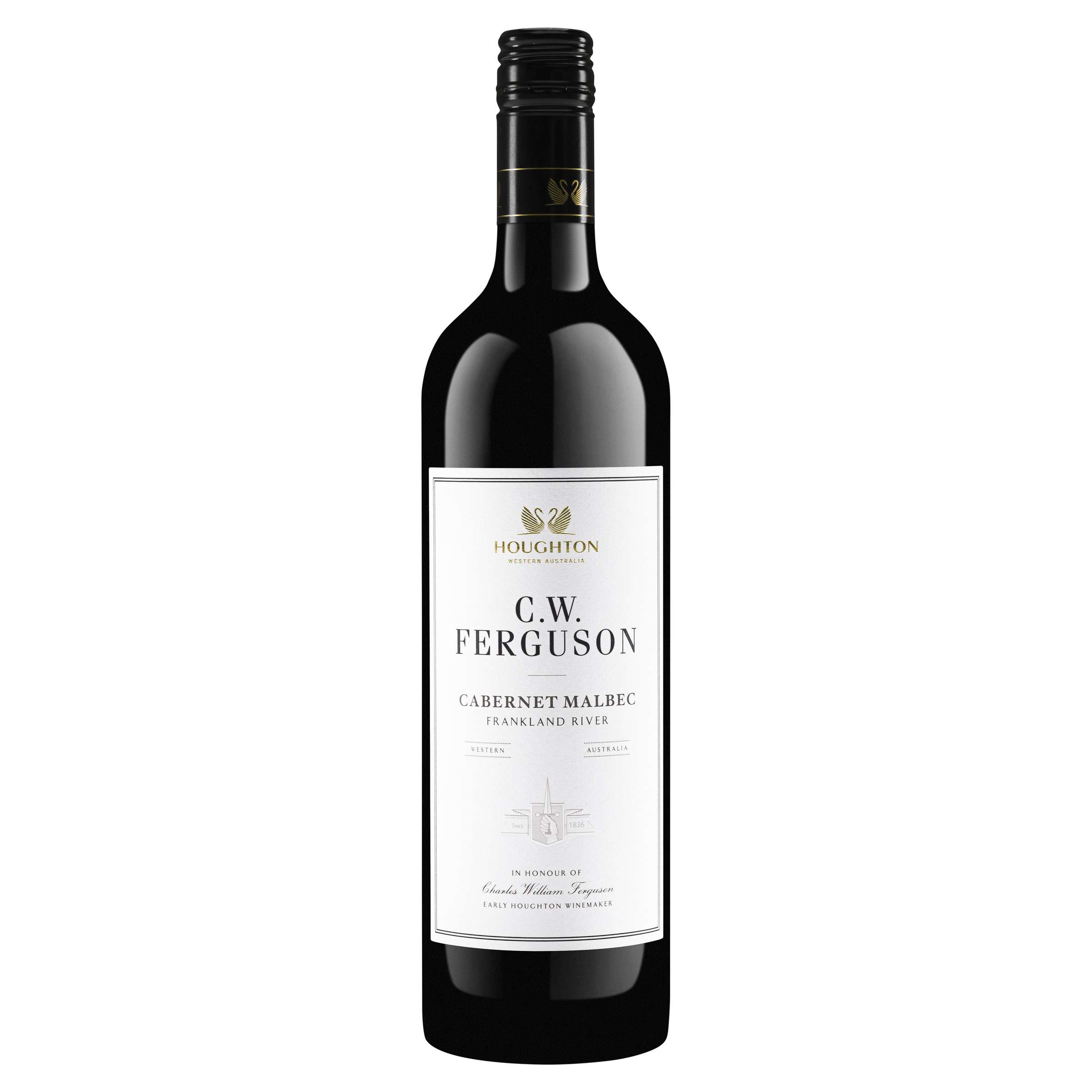 Great Southern Cabernet Malbec in honour of Charles William Ferguson, early Houghton winemaker. The CW Ferguson is vibrant red/purple with a garnet hue. Brooding and complex, with bright fruit characters of mulberry, plum, blackberry and cassis combined with cedar, spice, dark chocolate and hints of vanillin derived from the classy oak maturation. A wonderfully rich and complex wine. The full flavoured palate displays complex bramble fruit, dark chocolate and an imposing presence. A firm, but fine tannin structure supports a wine of great length and density. All at once rich, complex and perfectly balanced ensuring a long future with years ahead of it. Cellar for 10 years and beyond.